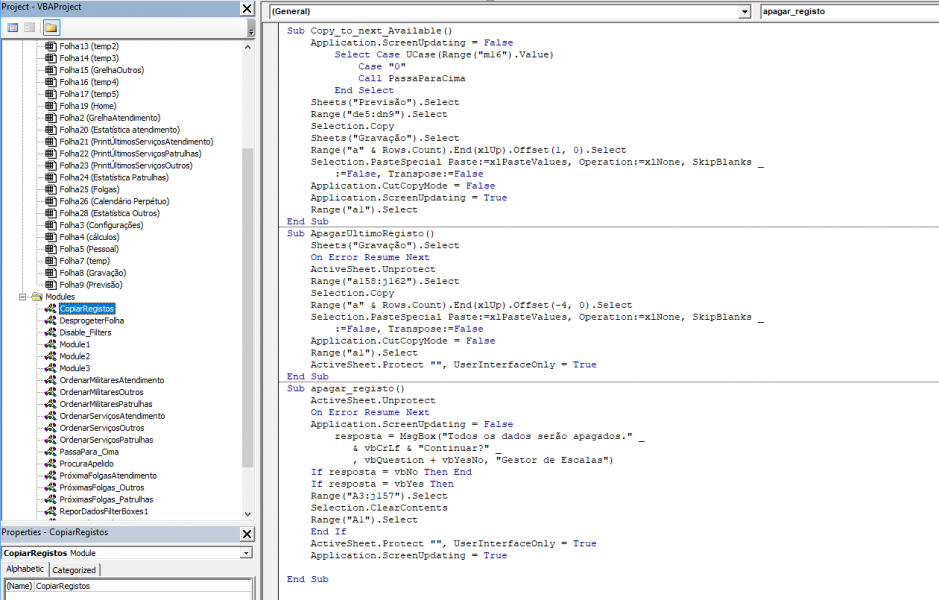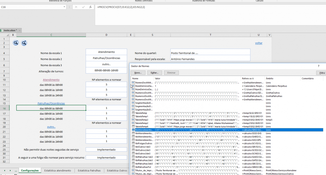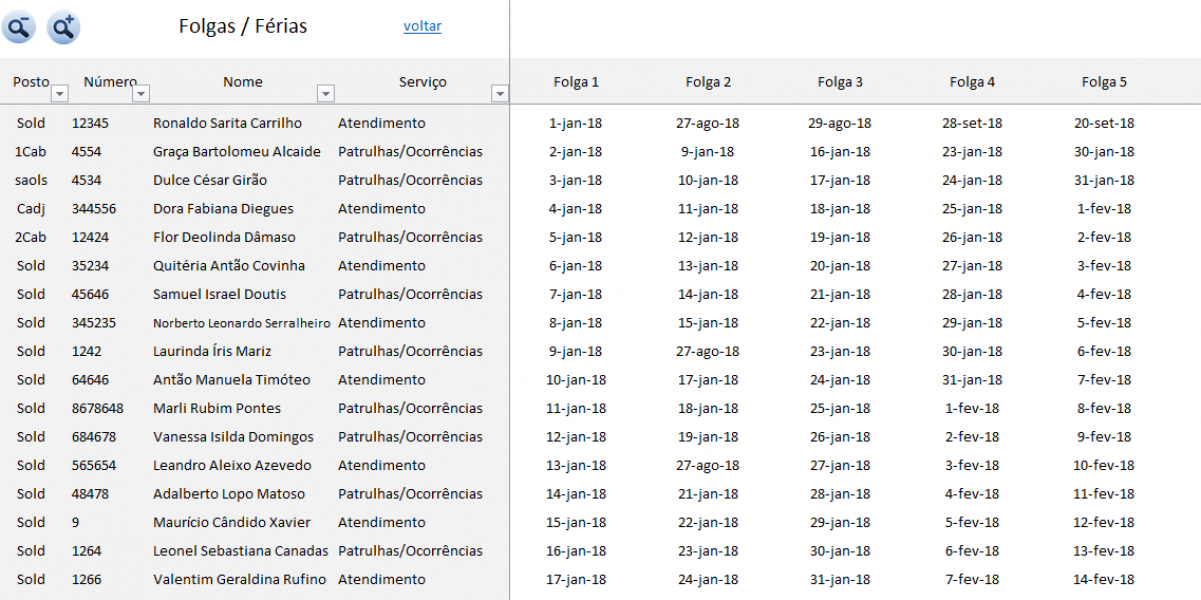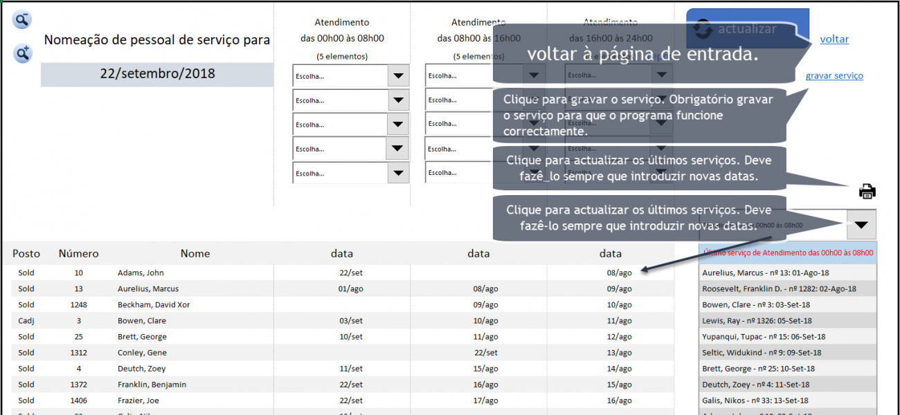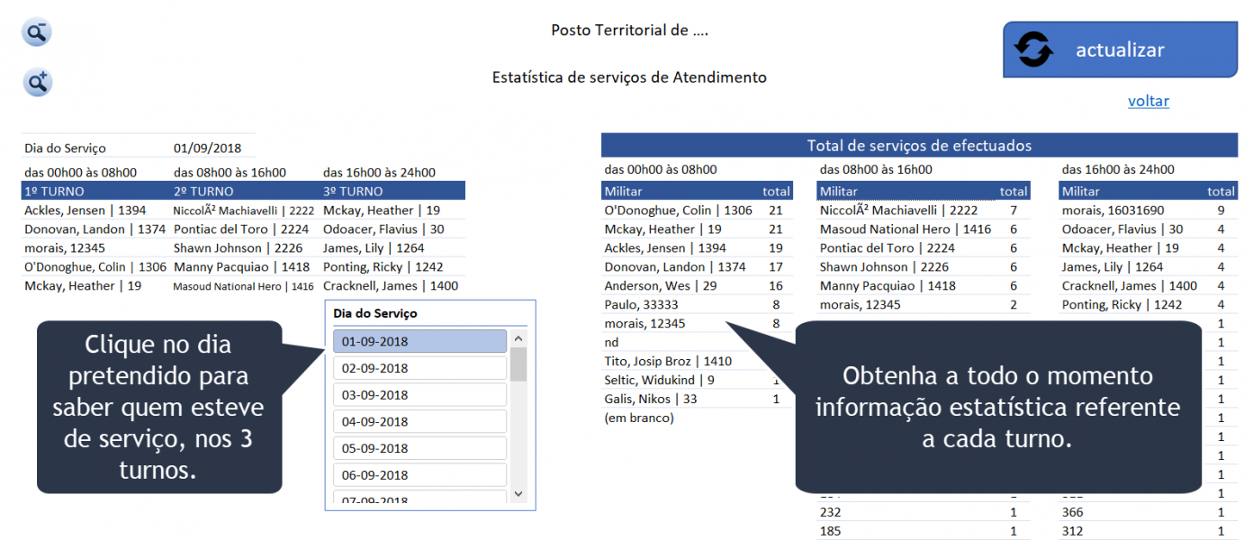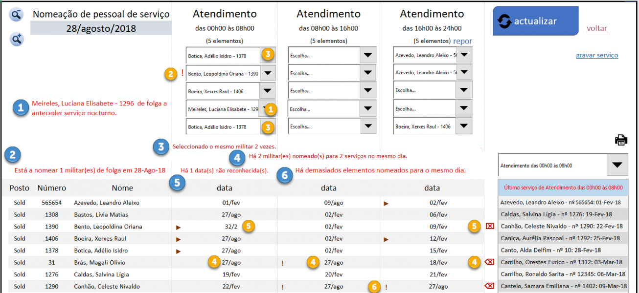 [Fevereiro 2010] Foi-me solicitada ajuda na área do planeamento dos serviços inerentes a um Posto Territorial. Nesse sentido desenvolvi uma solução informática que visa ajudar numa das tarefas dos responsáveis pela elaboração diária da escala de serviço.